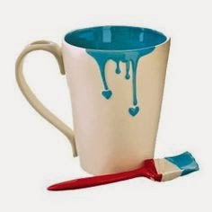 Pour some of the underglaze into a dish and dip a soft, wide brush in water, then mix it in with the paint. Not too much water, you just want enough so it glides down the side of the mug.
