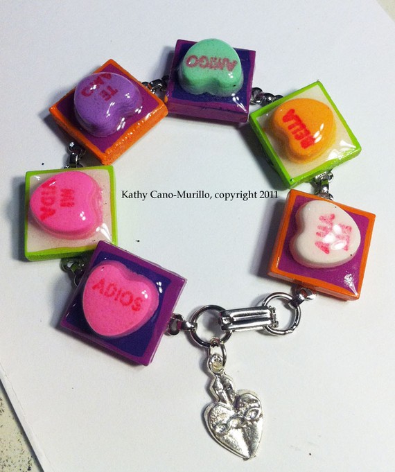 Conversation hearts are a must-have for Valentine’s Day. Actually, I think they’re great all year round. I always bought the Spanish language version and last year I noticed they were on clearance at Target after the holiday. I bought every last pack, about a hundred of them! They were only .33 each! I’ve been making jewelry with them and thought I’d share the process.