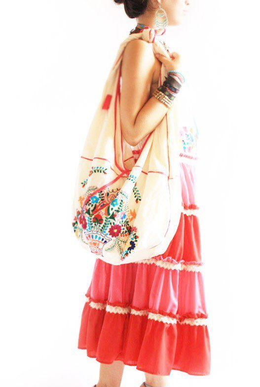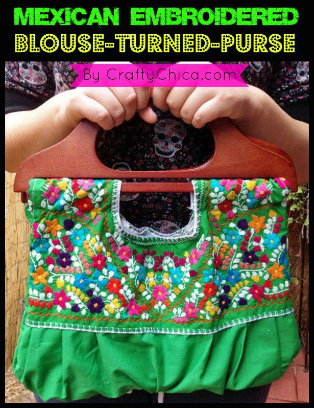 This is a project that I’ve been wanting to try since forever! Transforming a Mexican-embroidered blouse into a purse. There are a lot of variations. You can find these blouses at thrift stores or Mexican import stores. I went with wood handles, but you can get creative and create straps or make an envelope style clutch.