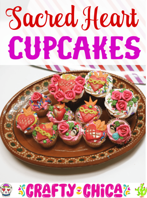 These sacred heart Valentine cupcakes are as fun to make as they are to look at. I’m not a trained baker or cake designer, I just figured using fondant was a lot like using clay, so I thought I’d give this idea a try!