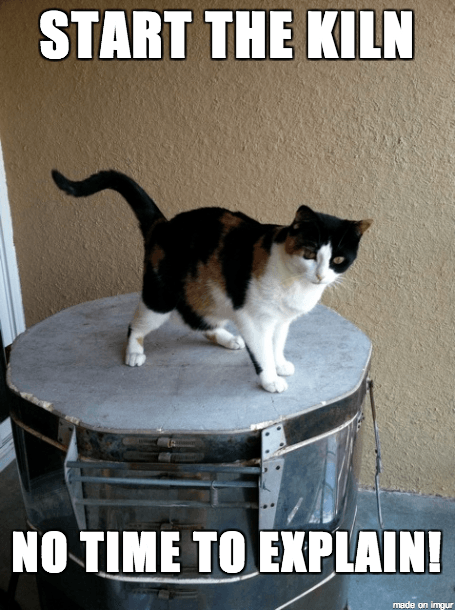 9. Keep all your kiln supplies in the same area. If you use a standing rack for pieces to dry, don’t put it too close to where you’ll be walking around and loading the kiln. My big butt once knocked over an artist’s drying rack! I could have died, I was so embarrassed, but then I realized that rack was so close to the kiln, it’s no wonder! Even skinny Kelly Ripa could have bumped into it!