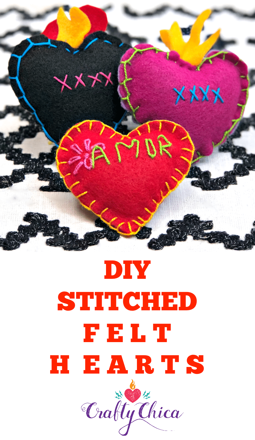 VARIATIONS: Use a whole sheet of the felt to make larger hearts. Embroider a message or names of your friend or loved one!