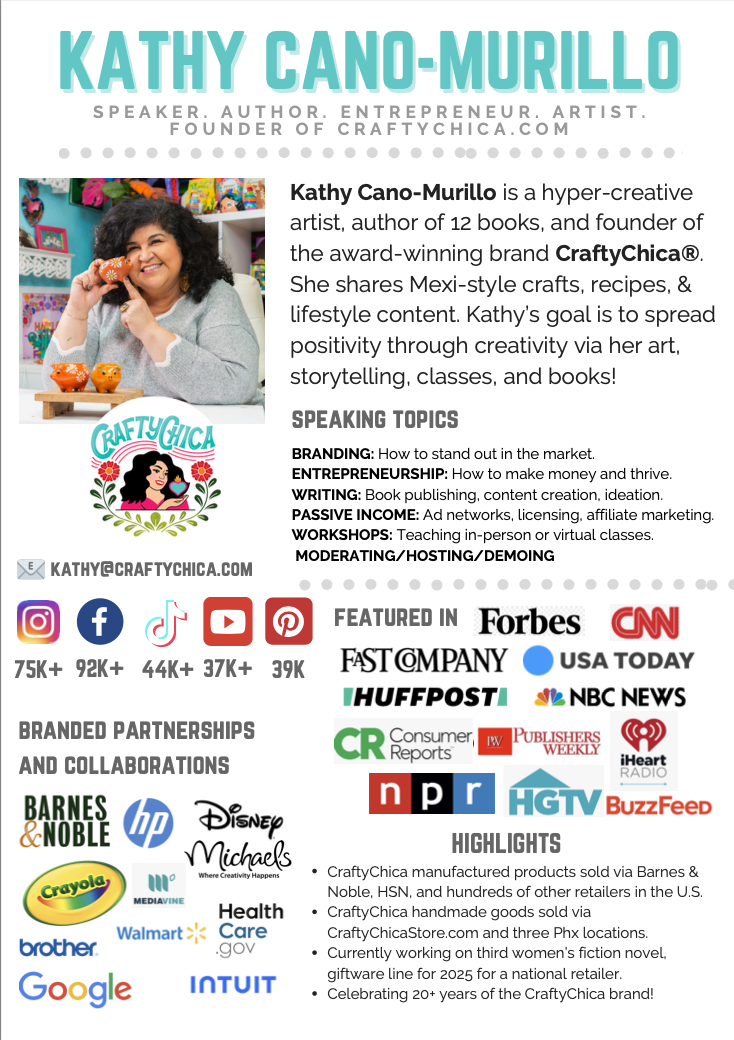 Brand campaigns & ambassadorships. One of my favorite aspects of running Crafty Chica is sharing helpful and awesome content and products with my readers and followers! Many times I’ll review these items, and other times I partner with my favorite brands to present authentic sponsored content. I’m very selective because I only promote what I absolutely 100% love! Fill out the form below to receive my media kit. Past clients include: Walmart, TurboTax, HP, Kroger, Healthcare.gov, Target, National Parks, Neutrogena, Cricket, T-Mobile, and dozens of others.