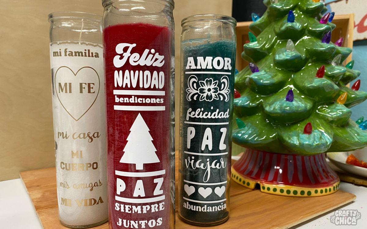 DIY Holiday prayer candles using the cricut joy #craftychica #cricutjoy